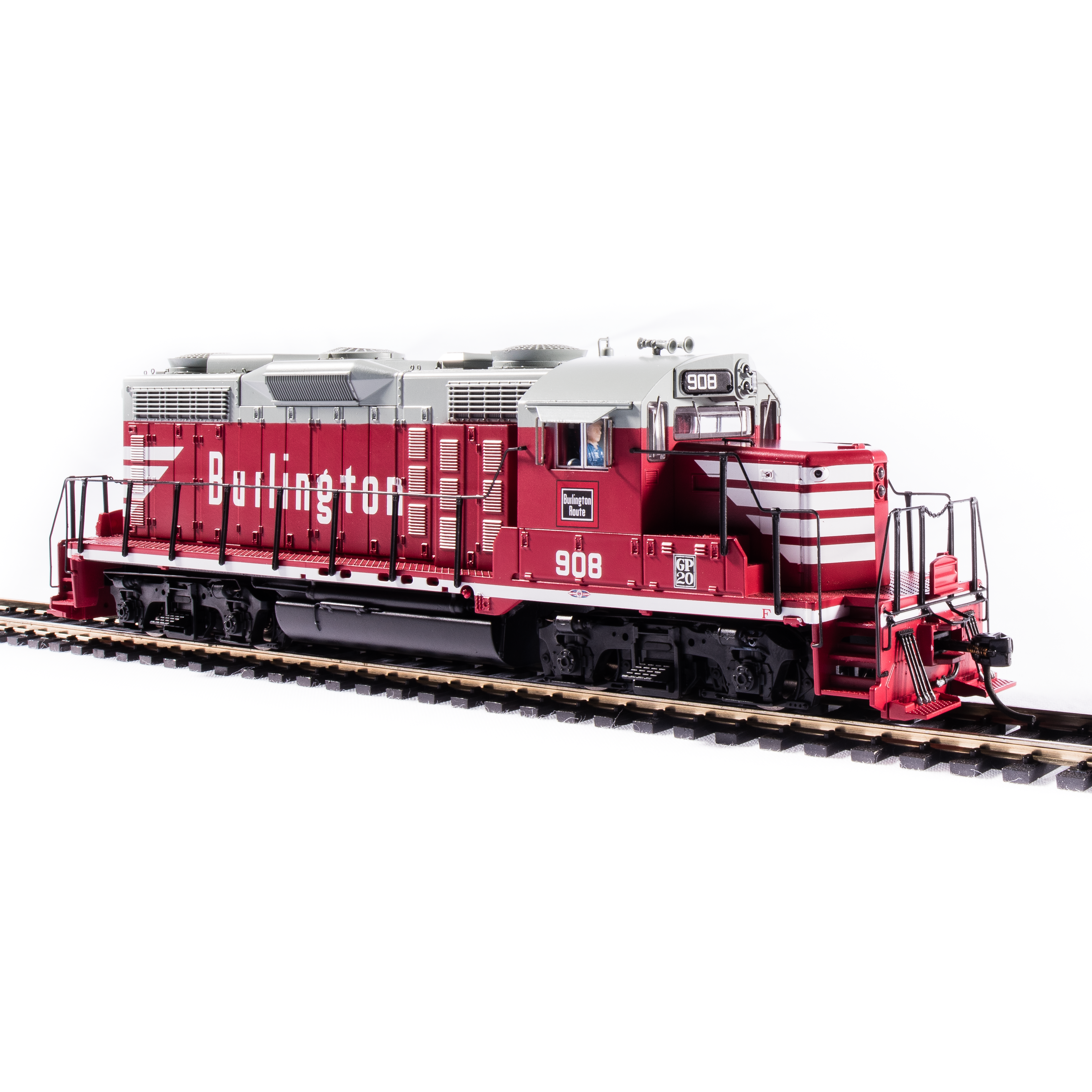 Broadway limited ho p4 gp20 diesel cb&q #908/red&gry dc/dcc sound