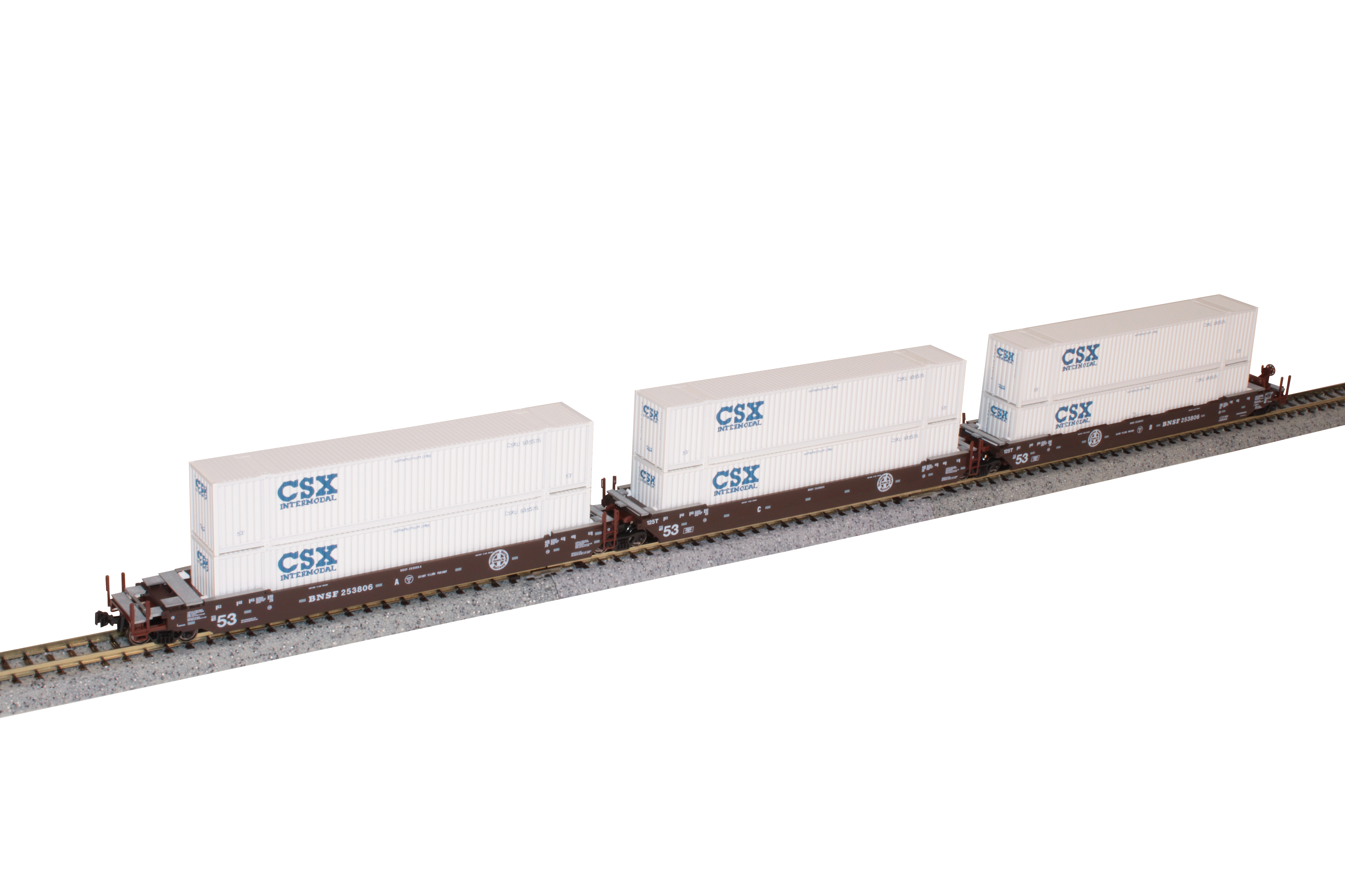Kato n scale bnsf maxi-iv 53' well cars with csx containers