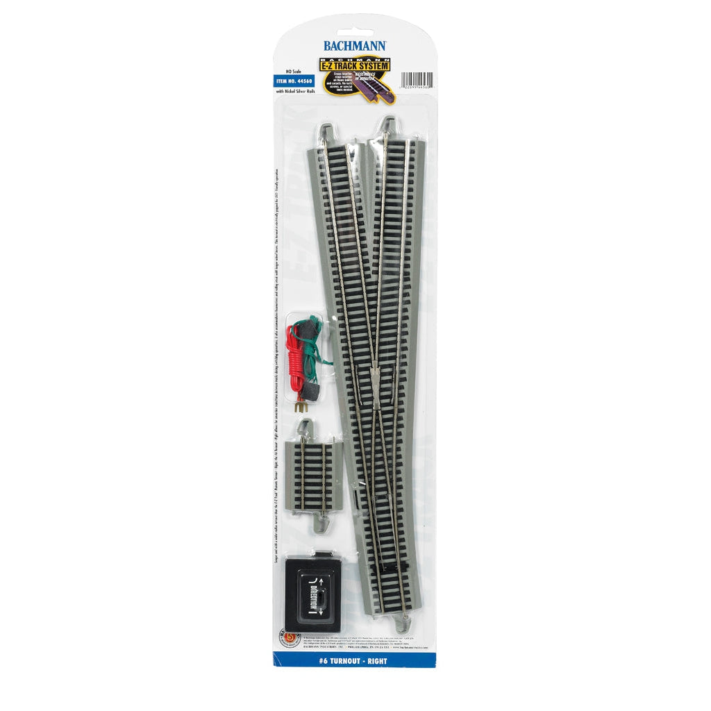Nickel silver track with gray roadbed; 1/cardLonger and with a wider radius turnout than the E-Z Track® Remote Switch - Right,...