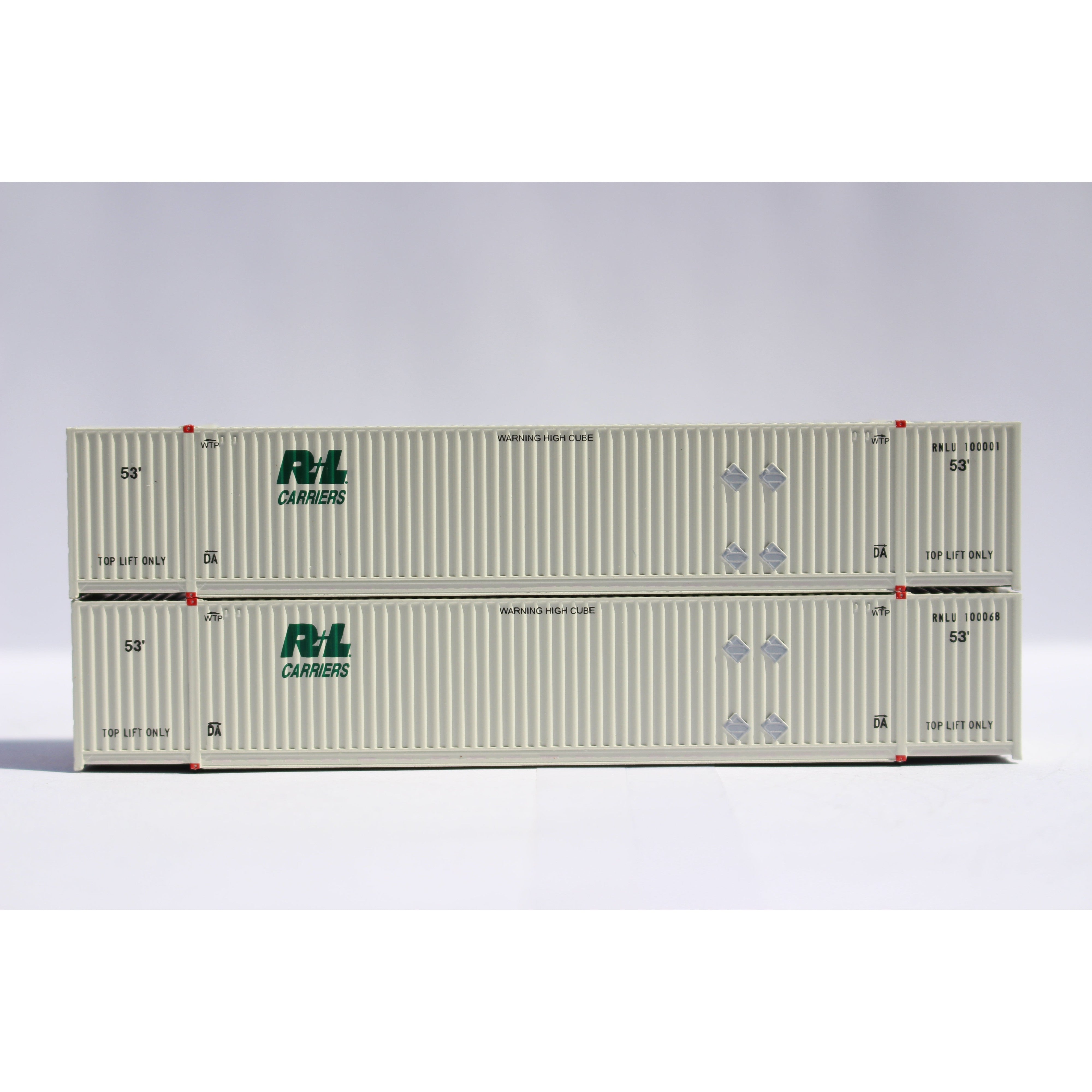 N Scale 1:160, R + L 53' HIGH CUBE 8-55-8, Set #1, corrugated containers. JTC # 537062, COMPLETE PROTOTYPICALLY CORRECT NEW TOOLING....