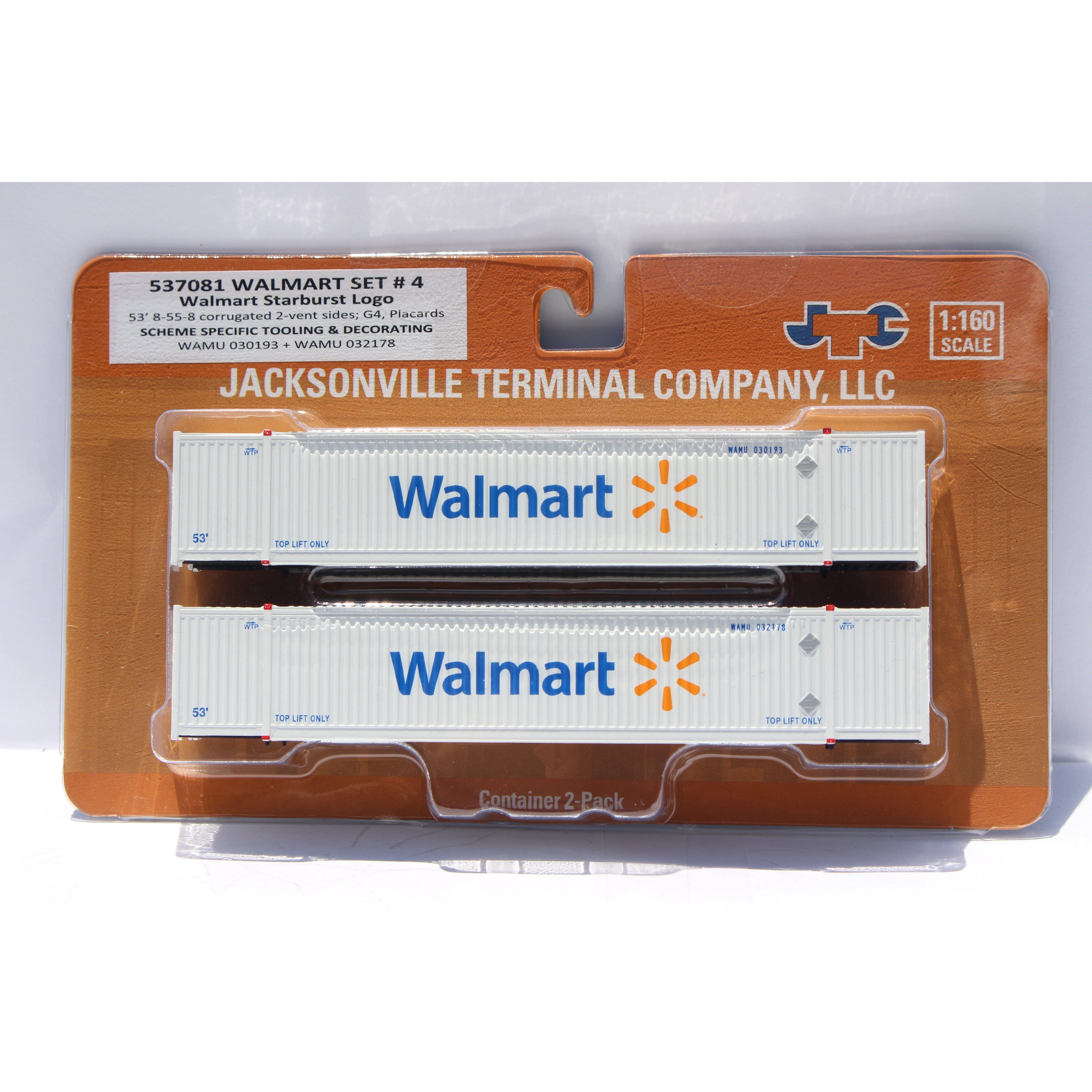 N Scale 1:160, JTC #537082 Walmart Set #5 - Walmart (star burst logo) New CIMC 8-55-8 Set #5 Corrugated container with...