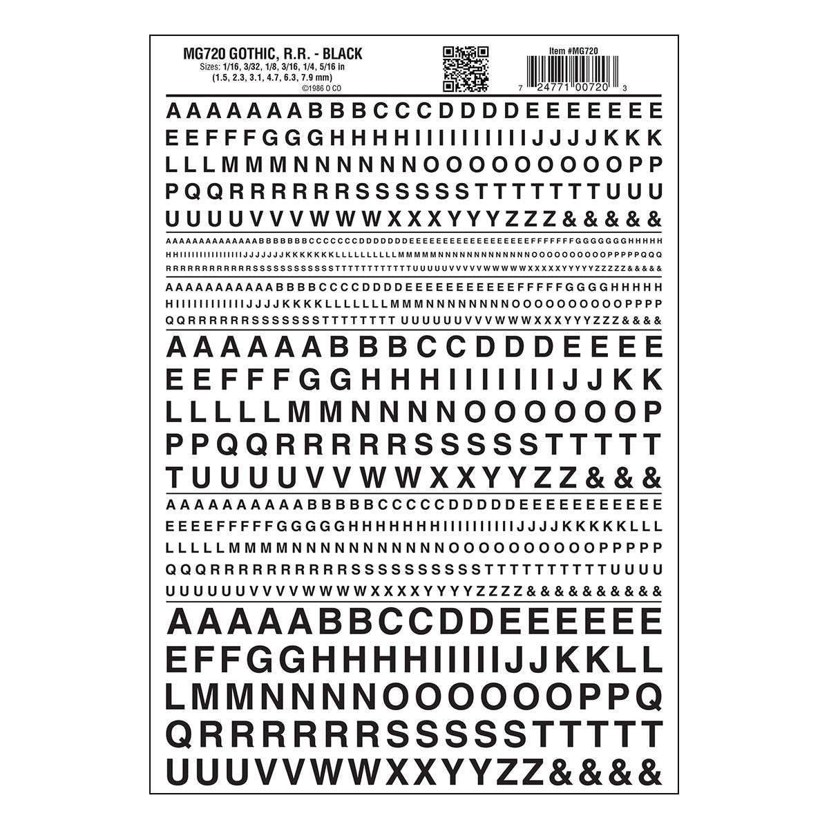 Woodland scenics rr gothic letters/black