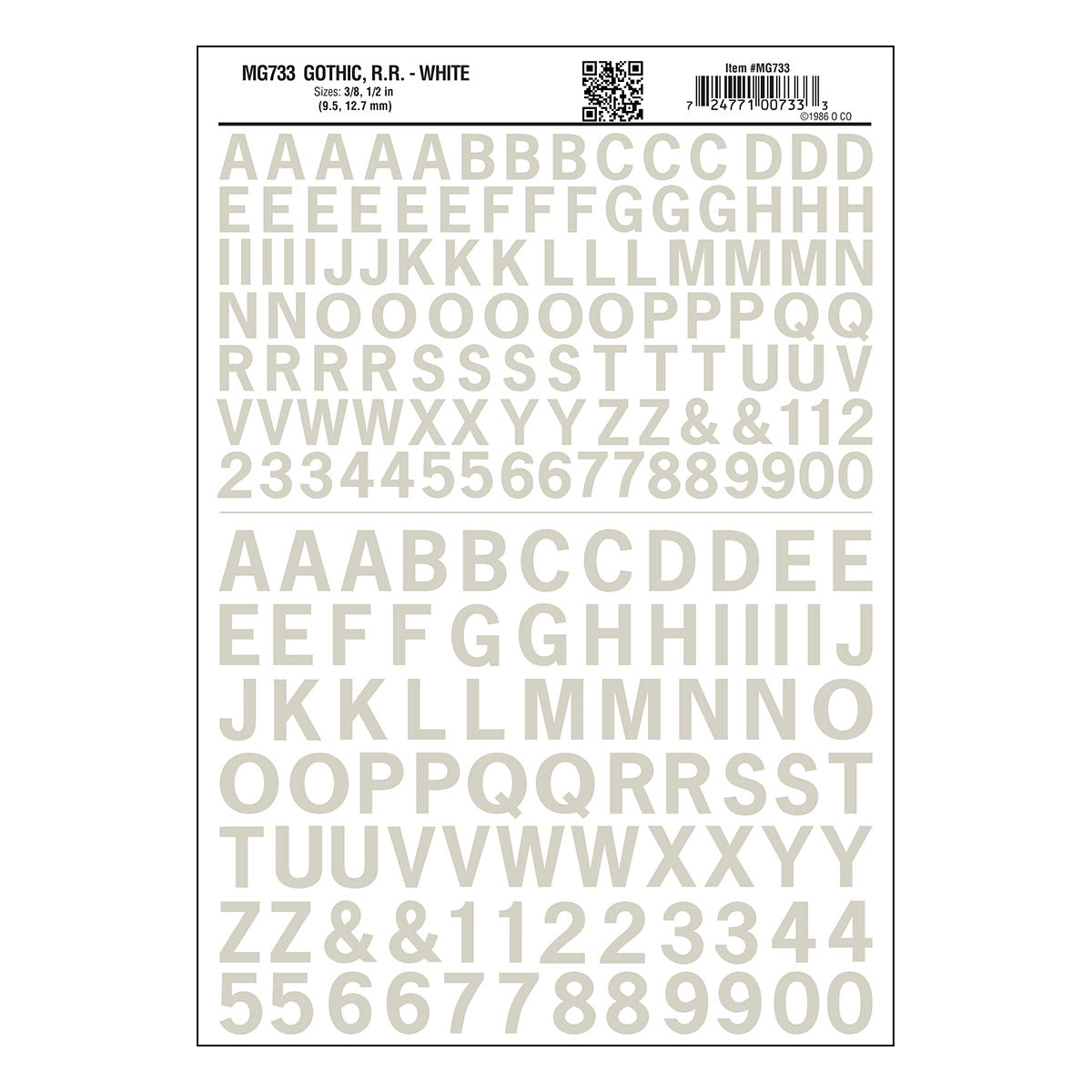 Woodland scenics rr gothic letters/white