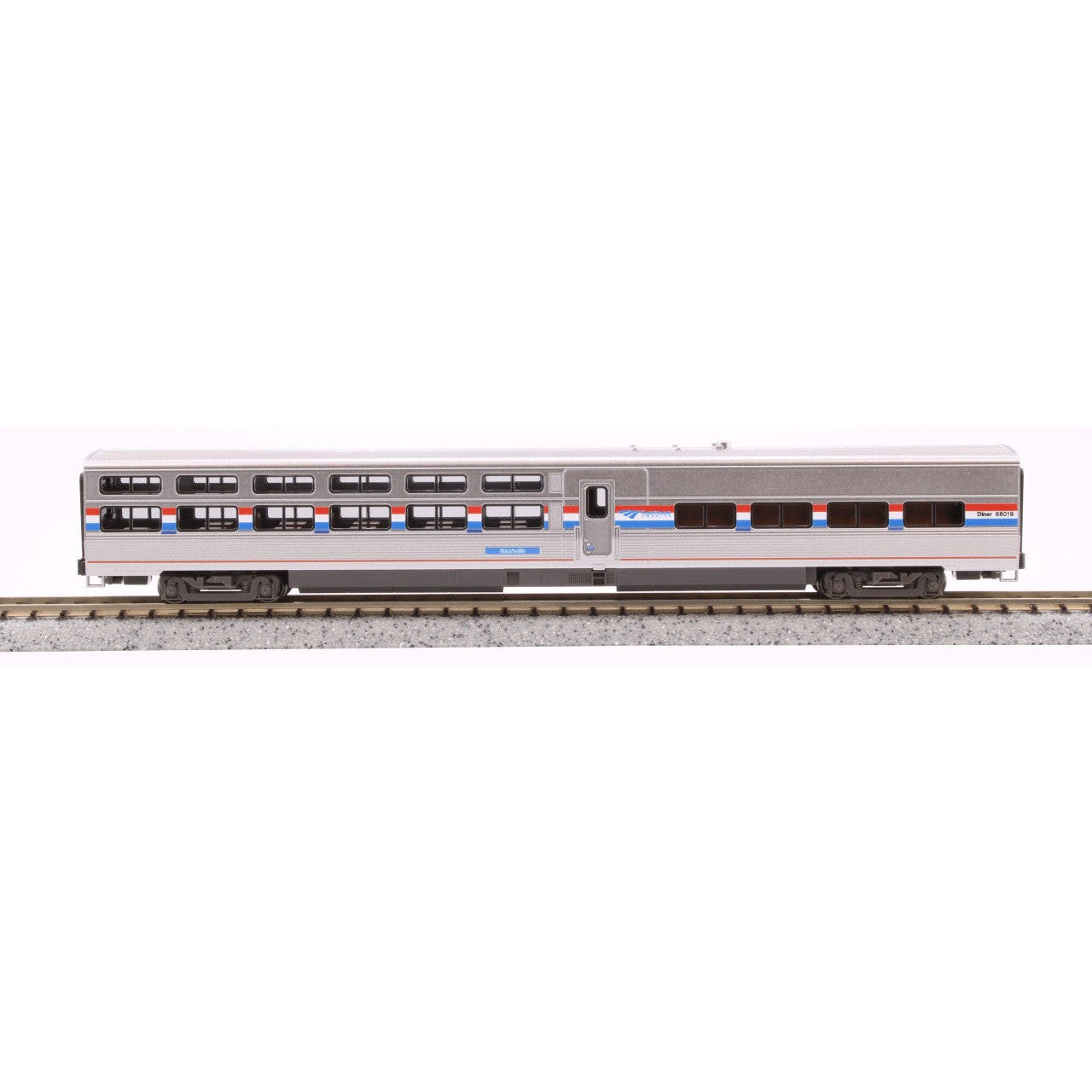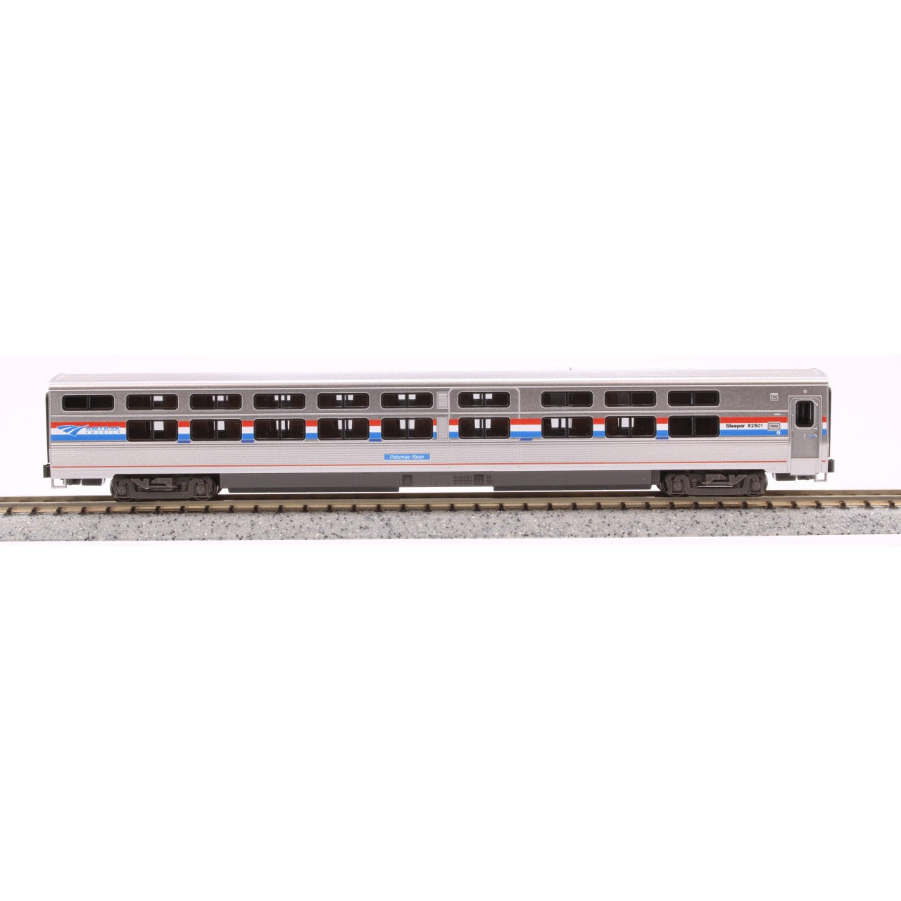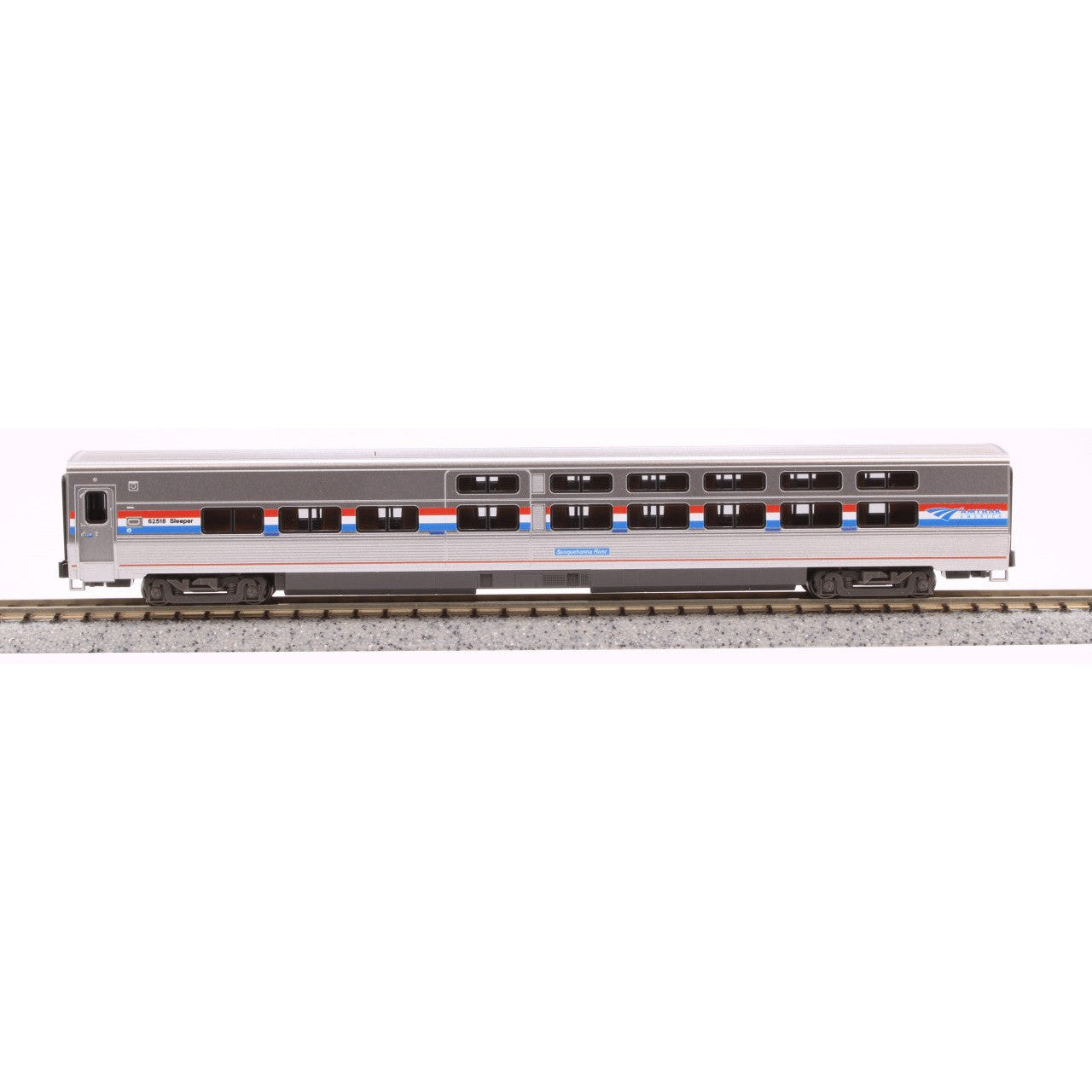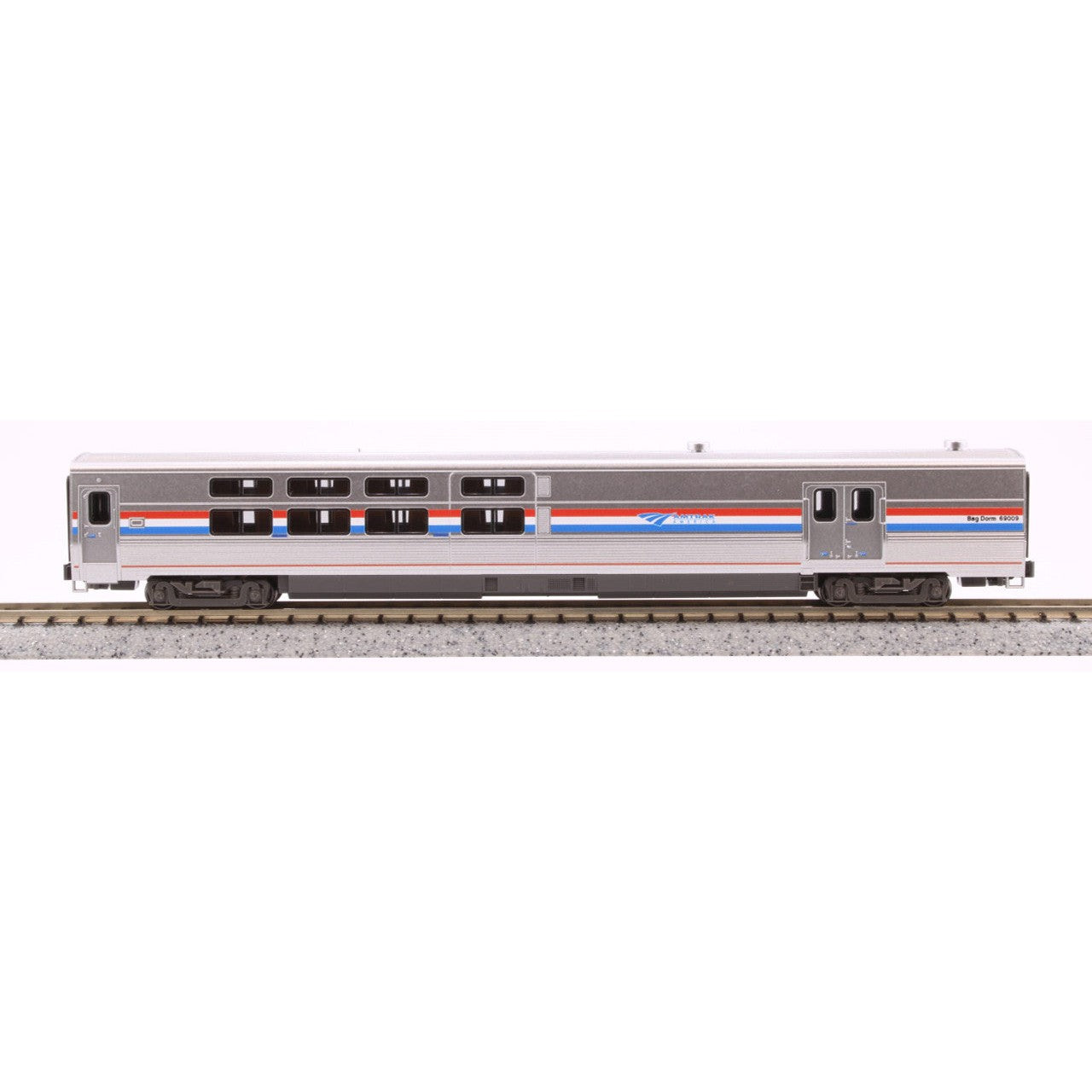 The Viewliner II is scheduled to be Amtraks newest addition to its fleet of single-level rolling stock, with planned rollouts of Baggage cars, diners, and Sleeping cars all expected to enter standard service through the next few years. Right now Amtrak is operating 55 Baggage cars in this new style, wearing a special Phase III heritage paint scheme that combines the classic red-white-and-blue stripes with Amtraks new modern logo and the phrase Amtrak America. While the Viewliner and Amfleet single-level cars are typically designed for use throughout the Eastern United States on long distance trains, the new Viewliner II Baggage cars are also used on Superliner trains, making them extremely versatile and a great addition to a model railroaders N scale Amtrak fleet!